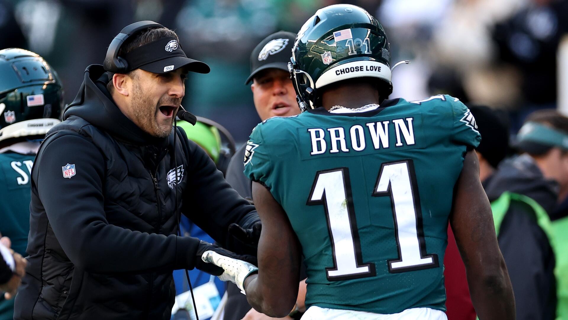 Nick Sirianni and A.J. Brown have heated exchange on sideline after Eagles wideout drops pass vs. 49ers